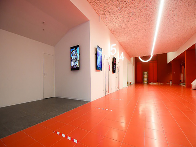 Холл кинотеатра - это открытое арт-пространство, оформленное в бело-красных тонах, что очень характерно для стиля конструктивизм. Здесь и в кинозалах организуют различные выставки современных художников, мастер-классы, ярмарки, лекции, игры, концертные выступления и многое другое.